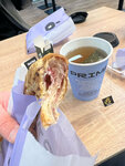 Вкусно, быстро, удобно по пути на работу захватить с собой. Было бы здорово, если бы вы добавили сендвичей. И цены маркером на стекле выглядят не очень.