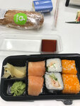 Купила «суши-рулет с Камчатским лососем» - это просто какой-то франкенштейн 🤢 вот представьте, по названию суши-рулет обычно люди ожидают что-то азиатское, похожее на роллы (вкус соленый или с остринкой). НО сначала вы удивитесь, увидев тортилью под нори, далее откусив, вы заметите капусту, сладкий маринованный такуан (разновидность редьки), а «Камчатский лосось» окажется в состоянии каши, по вкусу напоминающей картофельное пюре. Кстати, этот несчастный лосось ещё и крашенный оказался, так как на тортилье осталось красноватое пятно. Может быть и не лосось вовсе. В общем и целом, это было не просто смело 🤣🤣🤣 Пожалуйста, предайте тому, кто придумывал это блюдо, что люди покупая готовую еду навынос, хотят простой и понятной еды, а не шокировать свои вкусовые сосочки. Хотела вкусно пообедать, в итоге съела непонятно что, по ощущениям, хочется стереть этот день из памяти и начать заново, чтобы никогда не чувствовать вкус сего «шедевра». К самому заведению вопросов нет - персонал приветливый, отзывчивый, но не навязчивый.