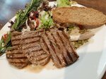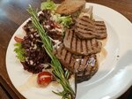 Fast and delicious cooking. Notes of traditional Belarusian cuisine are present. The service is pleasant, you can comfortably sit in a chair, put your devices on charge, study the menu and voice your order to the waiter. I recommend the steak in the photo! A mountain of greens and meat, very tasty and satisfying!