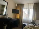 Номер -стандарт, чистый, придираться не буду. Есть чайник, то есть приходить в номер надо купив бутылку воды, кулера на этаже не увидела. Зато есть машинка для чистки обуви👍 Окна выходят на улицу, от фонарей светло, как днём, поэтому очень выручили темные шторы. В ванной нет полотенцесушителя, выходить из душа зябко. И самый большой грех: плохо регулируется температура воды в душевой лейке. В номере жили вдвоём и обоим было некомфортно пользоваться душем из-за этого. В целом понравилось: есть лифт для подъема с вещами, камера хранения, очаровательнейшие пейзажи в коридорах, приятный персонал. В шаговой доступности аптека, магазин, кафе. На 1 этаже - кофейня с умопомрачительными десертами и выпечкой, ням. И шут с ним, с краном.