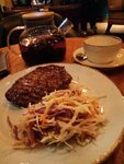 Как обычно, перед спектаклем в «Зимнем» у меня ужин в разных заведениях, которые в одной локации с театром. На этот раз счастье выпало пабу «Prince&Horse». Оригинально оформленный паб с большим выбором пива. Мебель подобрана в стиле британского паба – удобные столики и кресла, оригинальные барные стулья, уютная обстановка. Есть второй этаж. Меню в основном под пиво, но есть и позиции для "трезвенников". Заказ принимали долго, пришлось два раза звать официантку. Музыка громкая, из-за чего немного не комфортно. Стейк подали очень быстро. Заказал среднюю проверку, не скажу, что тает во рту, но оценку 4.8 стейк заслужил. Пиво не пробовал (за рулём), а вот десерт просто превосходный, ещё и с карамельной корочкой сверху. Цены средние.