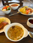 Приятное место, разнообразные вкусные блюда всего за 750р. Красивая веранда. Есть пара супов на выбор , несколько гарниров, рыба, свинина и курица, также несколько салатов , фрукты с сиропами, десерты. Хороший кофейный аппарат (есть горячий шоколад). Чистый цивилизованный туалет с горячей водой😅