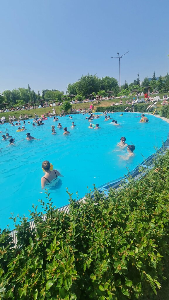 Были с ребенком два раза в июне и в июле. На территории 4 бассейна,два больших, два для малышей, бассейны чистые. В июне вода была тёплая, купаться было комфортно, в июле в воду не возможно было зайти,очень холодная во всех бассейнах кроме двух детских, из-за этого настроение было испорчено. В летние жаркие дни хочется искупнуться, а не просто погулять по красивой территории за не маленькую сумму. Территория очень красивая, большая, лежаков достаточно, для детей хорошая программа, особенно впечатлила пенная вечеринка, но и тут минус, после неё негде было ополоснуться, вода в душе закончилась🤪 На такую большую территорию очень мало фуд кортов, пиццу ждали 1:40🤦‍♀️ Если не считать не большие минусы, отдыхать там классно🤗