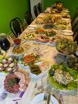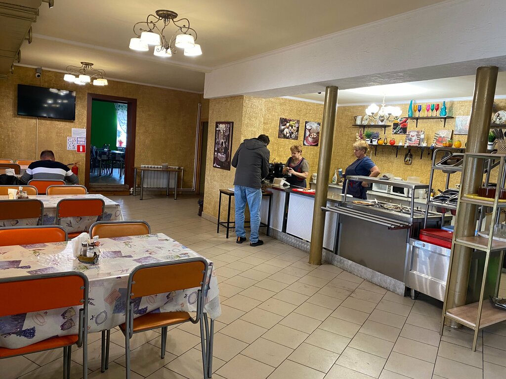 Попали в комплексный обед. Спросили на будущее, он с 11:00- 14:00. Есть все. Два- три первых блюд, мясных блюд 5 видов, гарниры, салаты, выпечка. Была пятница. На улице на мангале готовили шашлык. Так же оказывается кафе работает на банкеты