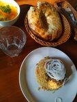 Все вроде вкусно, но очень жирное, много масла.. но это я считаю скорее не минус, а мои личные предпочтения. А так в целом перекусить сытно с дороги. Достостойное место, и дворик у них хорошо сделан с прудом. Приятно