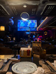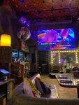 Хорошее место, атмосферное место, красивая обстановка, два этажа Когда я приходил, нижний этаж был занят, поэтому пошел на второй, удобные места, показалось, что перила были высоки (сидя не видно большой экран), но с точки зрения безопасности это хорошо. Кухня понравилась, напитки также - без претензий. Единственное, что не понравилось - на первом этаже стояли кальяны, и какое-то время я дышал гарью, вытяжка тянула недостаточно сильно иличто-то подобное