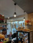 Заезжаю только когда рядом по делам. Маленькая, но уютная. В небольшом пространстве постарались сделать тематический интерьер. Хлебушек свежий. Запах прекрасный! В этот раз брали манник - 4+ (домашний все равно лучше🙃), Анну Павлову - 4+ (сегодня была суховата), корзинки - 5, обычно еще эклеры - но сегодня не хотелось....осень, наверное... кофе не пробовали, есть еще различные пирожки и пироги по 0.5кг., салаты, горячее. Девочки-пррдавцы всегда приветливы.