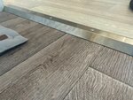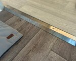 Купил у ребят порожек с перепадом 20 мм с отверстиями, ПР-20 название у него. Я этот порожек искал долго и много где пытался купить, ни в Леруа, ни в других сетевых крупных не было такой длины/высоты. У меня на даче пол с перепадом 23мм, гостиная переходит в кухню, вот в кухне поднятые полы. Также повезло с длиной: 2,7 метра, у меня 253.5, то есть мне чуть-чуть обрезать пришлось. А если еще взять заглушки для шурупов на маркетплейсе, то получится вот такая красота. Еще понравилось, что с верхней стороны тоже есть небольшой сгиб под углом, то есть никак не будет такого, что, если идешь и шаркаешь по полу ногами, то носки порвешь, в общем продумано реально. Ваш порожек идеально подошел под мои размеры по длине (2.55, пришлось отрезать аккуратно 15 см). Также по высоте перепада все очень хорошо легло. В отверстия обычные шурупы. На Маркетплейс заказал заглушки за 150₽. В итоге получилась такая красота