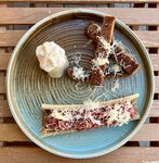 Хороший ресторан! Было вкусно, посидел в тенёчке на летних столиках на улице. Заказывал: - Тартар из говядины (вкусный, с оригинальной подачей в мозговой косточке). - Мидии в сливочном соусе (очень понравились). - Стейк мясника (просто неплохое мясо, нормально). - Десерт: шоколадный фондан (вкусный, хорошо приготовлен).
