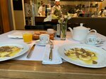 Здесь внутри очень комфортно и эстетично. Ощущения другой страны, изысканное обслуживание и очень вкусные завтраки. Такого круассана с ванильным кремом ни разу в жизни не ела ни в Италии ни в России, хрустящий, нежный с натуральными точечками мадагаскарской ванили - чистое блаженство! Красивая посуда и сервировка в целом. Цены здесь высокие, завтраки еще более менее, но на обед нужно решаться или ждать особого события)