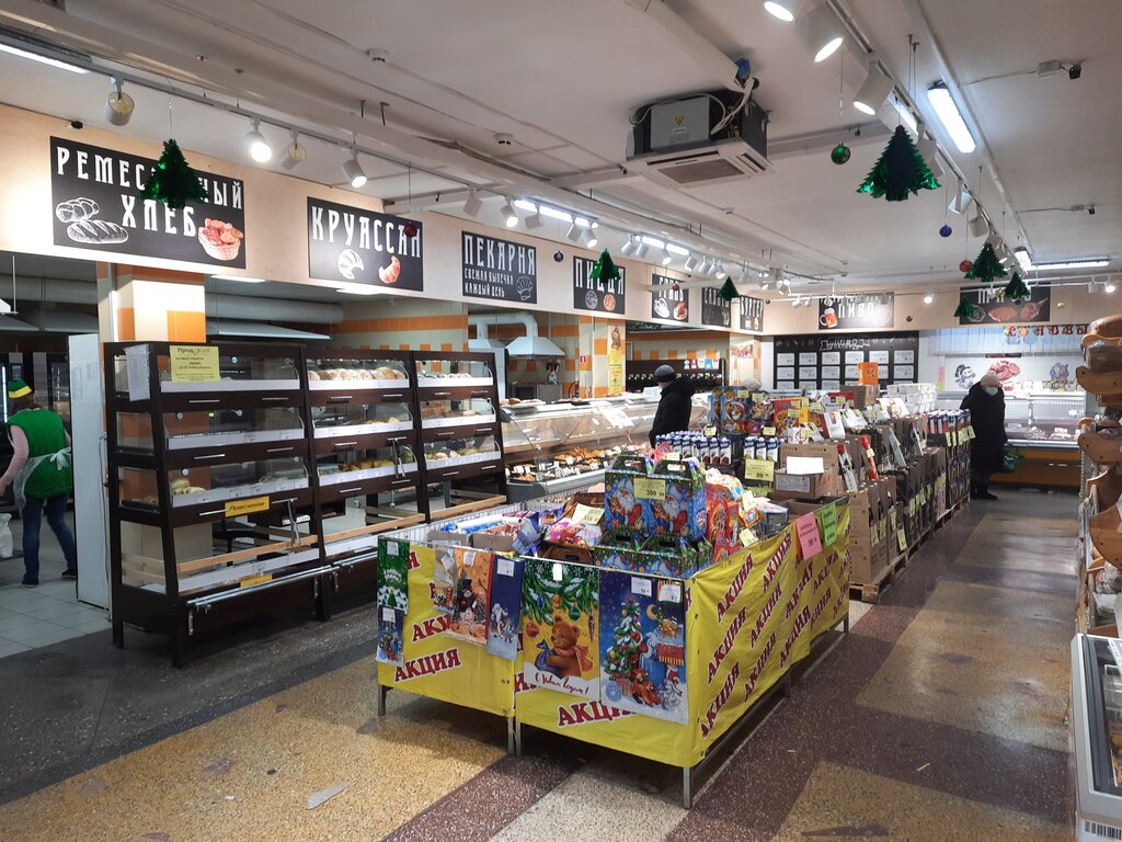 Неплохой выбор товаров, персонал вежлив, продукты доброкачественные, выпечка свежая, кассиры шустрые