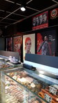 Магазин называется "Колбасный мир",существует приблизительно лет 20 на этом месте.Располагается рядом с автобусной остановкой.Даже магазином его назвать сложно,так небольшой закуток,несмотря на это ассортимент колбас,ветчин,сосисек,сарделек и т.д. довольно широкий.Покупателей всегда много,но продавцы очень быстро их обслуживают.Руководство магазина ,в последнее время,очень интересно оформили его.Повесили раритетные плакатики на советскую тематику.Что они хотели этим сказать?То ли то,что основные покупатели родом из СССР,то ли то ,что продукция такая же вкусная,как в советские времена.