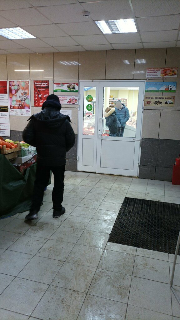 Продаётся мясо, бакалея, кондитерские изделия. Цены вроде приемлемые, выбор большой