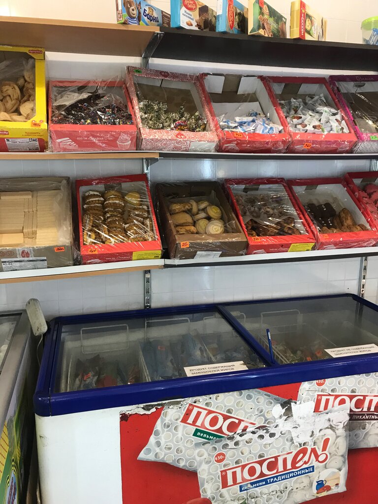 Цены очень высокие!... Малый ассортимент. Из плюсов, размещение рядом с автобусной остановкой , необычное помещние магазина я приятный кассир , есть холодильник для напитков