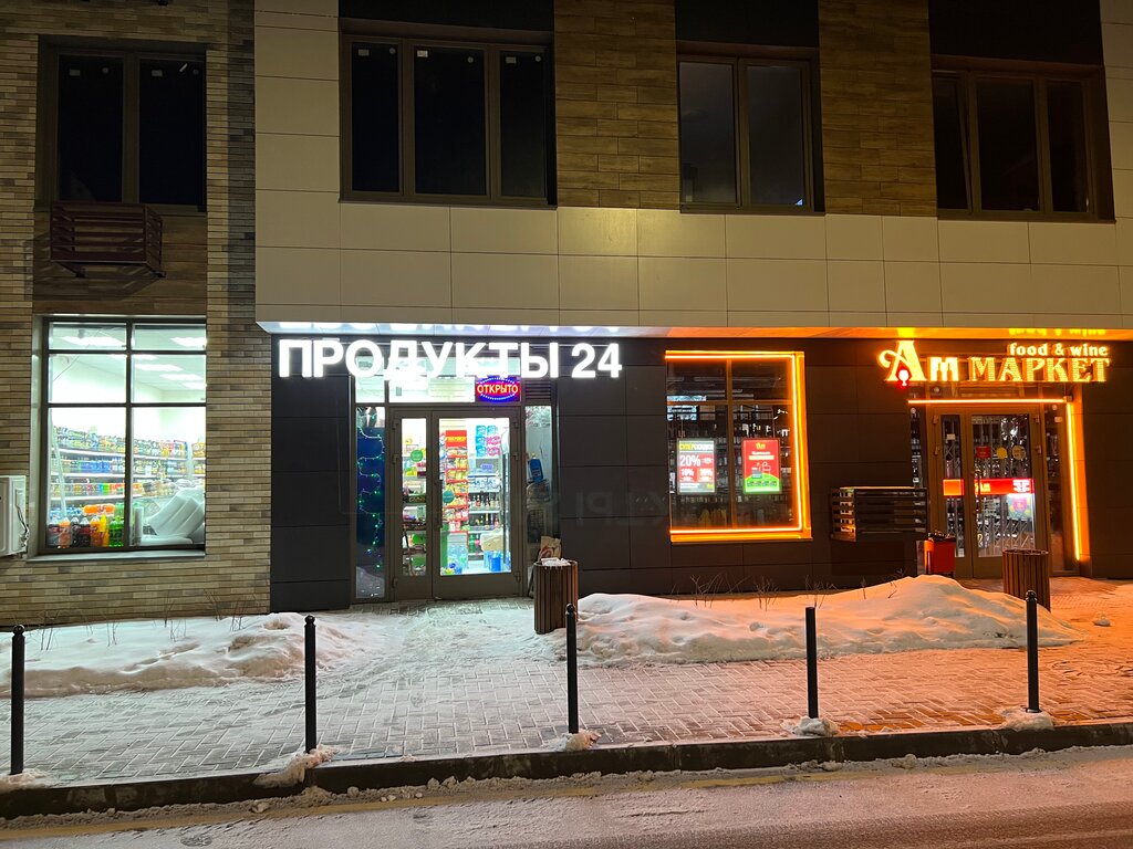 Магазин продукты24 - просто днище. Антисанитария, неприятный запах, продажа алкоголя после 12ти ночи. На полках бытовая химия вместе с продуктами. Понятно, что расчёт на строителей, как основного клиента Купить там можно только самое необходимое