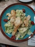 Fried noodles , so - so , frying pan too, Caesar is a bit greasy . the worst thing is that they take turns feeding , they made an order in the fourth , they brought dishes with a break of 10-15 minutes ! The music is incomprehensible and screams "to the fullest . " The hall is clean! Khinkali , it 's not khinkali , but boiled dumplings , the dough is thick and dumplings ! The prices are restaurant prices !