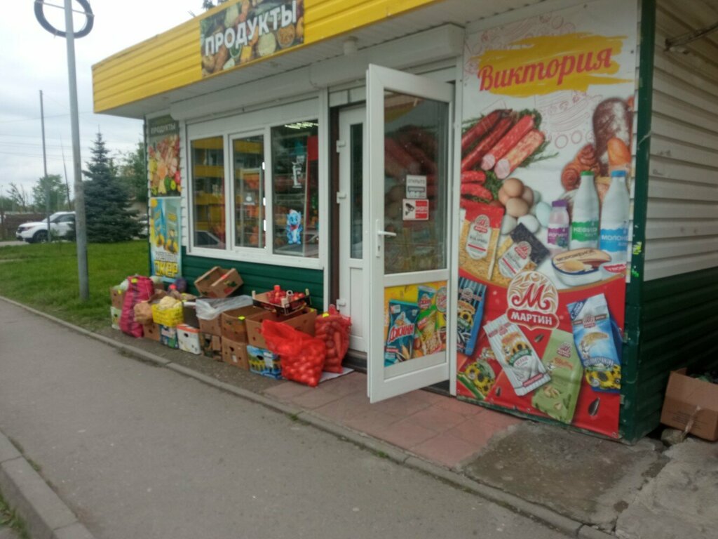 В шаговой доступности. Свежая продукция. Цены выше среднего по причине локации вблизи военного городка. Рекомендую. Оплата наличными. Удобный паркинг.