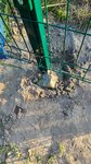 Забор сделали ровно, смотрится хорошо. Теперь к минусам: 1) Столбы залили очень криво, т.е. некоторые столбы в лунке находятся по самому краю! 2) так забивали столбы, что некоторые с верху сплющились, отслоилась краска, будет ржаветь! 3) местами сильно перетянули болты в местах крепления, срезалась краска, уже коррозия. Фото прикладываю. 4) Договаривались, что если останутся столб или решётка то заберут, монтажники сказали мол ничего не знают. Мне они зачем теперь?