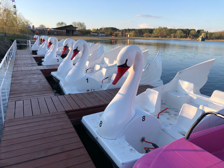 Очень классна активность, покататься на катамаране по озеру! Дизайн самих катамаранов просто прелесть. Хотели выбрать машину, но в итоге пришлось пересесть на лебедя, тк там проще 1 человеку крутить педали. Хотелось бы что бы персонал говорил об этом или давал запасное время на усаживание и выбор лодки. К сожалению, омрачает весь отдых - персонал. Девушка за кассой с недовольным лицом пробивала нам поездку, потому что мы отвлекли ее от важных дел в телефоне. В целом на набережной везде все грустно с персоналом…. Общаются так словно домой к ним зашли и денег просят