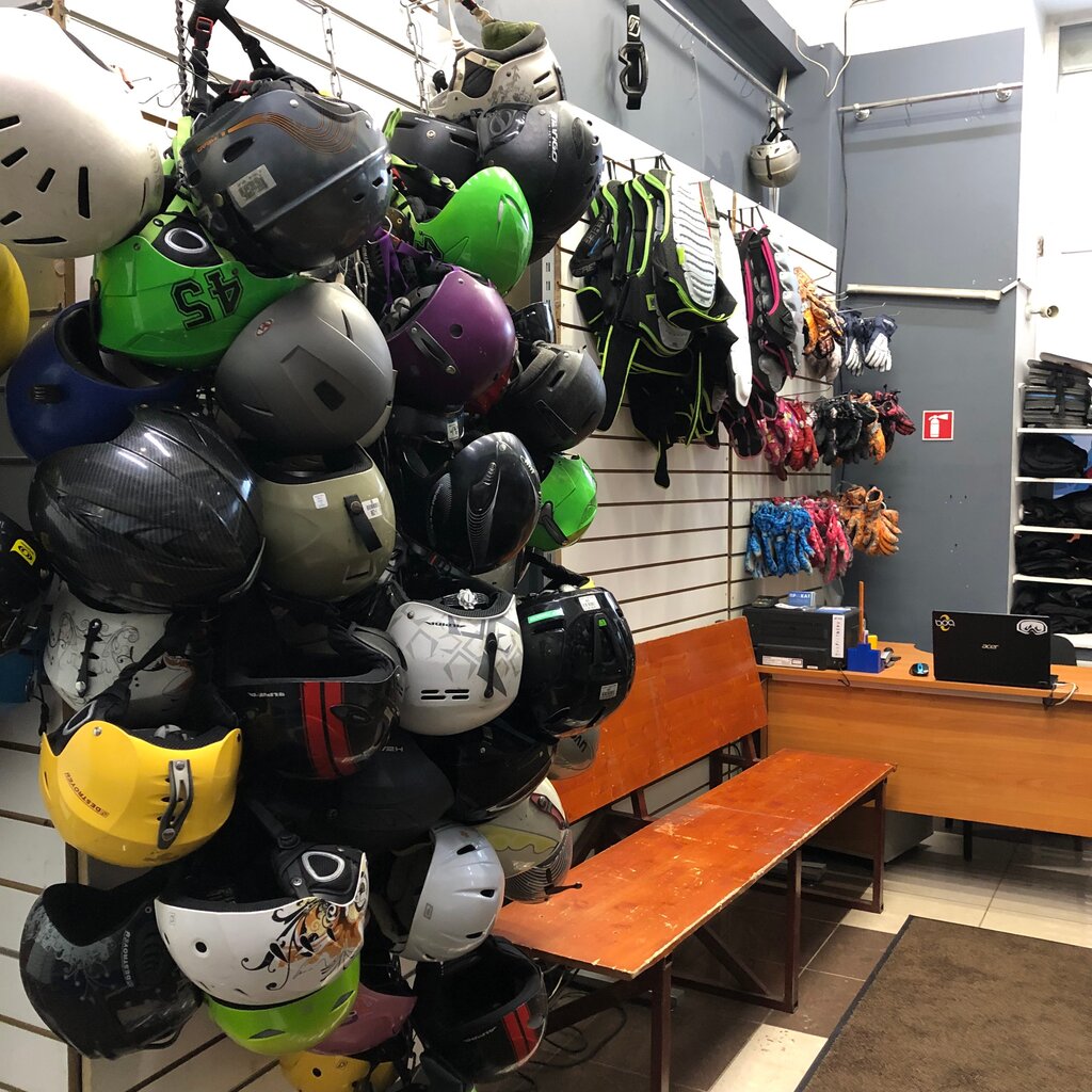 Огромный ассортимент. Очень вежливый и заботливый персонал, мне подобрали классное оборудование, доску напарафинили, ботинки почти новые, отлично покаталась в горах. Спасибо!