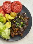 Лопатка — нежное диетическое мясо с мраморностью, покрытое тонким слоем подкожного жира. За счёт тонких жировых прослоек внутри мяса готовое блюдо получается сочным, с насыщенным вкусом и ароматом. Натрите лопатку чесноком, розмарином, солью, олив...