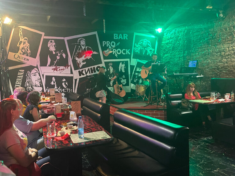 Персонал нормальный, меню стандартное, цены в среднем +- одинаковые с подобными заведениями. А теперь о печальном... Само название говорит о том, что музыка там должна быть соответствующая, но... В тот вечер когда мы там были играла группа, которая из рока сыграла буквально 3 песни, а остальное попса и каверы на неё. Конечно если не придираться, то нормально спели и все такое, но все ж таки ожиданий было больше. Нет в баре той атмосферы, которая должна бы быть в подобных местах, так что увы и ах 3 бала, не более.