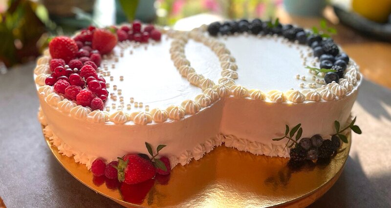 Торт на ванильном бисквитике со сливочным сырным кремом с пюре манго и маракуйя в креме. Украшение из ягод (в зависимости от сезона может отличаться от фото) 250гр и надпись на ваш выбор. Стоимость с декором от 3500 р