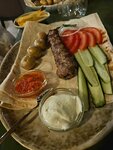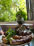 Отличное обслуживание, все очень вкусно. Постоянно ходили сюда. Пробовали и шашлыки и кебаб, вкусная зелень. Сырная тарелка с местными сырами. Овощи на гриле вкуснющие. Из алкоголя брали разливное пиво, обычное. Хорошая самогоночка с айврй и гранатом.