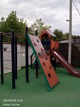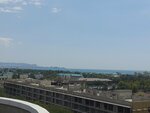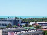 Чистые номера, в стандарте - фен, кондиционер, телевизор, зеркало, холодильник. На каждом этаже доска для глажки и утюг. Бассейн бесплатный, довольно глубокий, 150 см. Столовая платная. На нижнем этаже чайник и микроволновка, воду покупать для чая не нужно, можно использовать воду, которая стоит у чайника. Чай, кофе, сахар свои. Уборка бесплатная, по требованию. Смена постельного раз в 5 дней. Есть детская площадка с горкой и качелями и детская комната внутри. Вай фай хорошо ловит внутри помещения, на балконе и у бассейна с перебоями. До моря одна остановка.