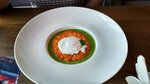Посетили этот ресторан 29-ого мая, в честь нашей годовщины. Внутри обстановка хорошая, играла приятная музыка. Нам предложили остаться внутри помещения, либо подняться на веранду. Мы конечно поднялись на веранду, но там оказалось очень ветрено и мы вернулись обратно. К сожалению по напиткам они были не богаты. Не было алкогольных напитков как "Лонг Айленд", "Мохито". Заказали "Апероль Шприц", честно по мне не очень. =) Я заказал стейк из лосося, а супруга "Фишкейк с шпинатным соусом и яйцом пашот". Честно сказать, блюдо очень вкусное, если Вы будете в данном ресторане, советую заказать. Официантка Софья которая нас обслуживала, приятная девушка. Быстро приняла заказ и учитывала каждое пожелания клиента. Так что рекомендую к посещению ресторан.