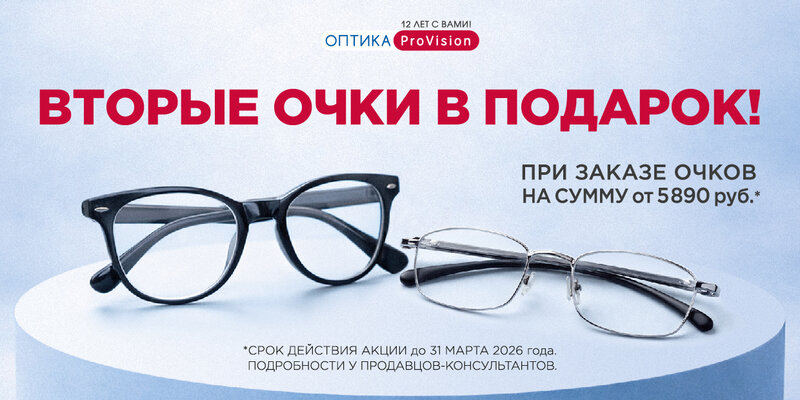 🎁 Вторые очки – в подарок В ProVision действует специальное предложение – заказывайте очки на сумму от 5890 рублей и получите вторые очки ...