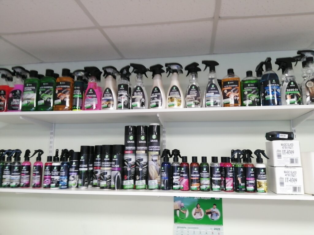 Большой ассортимент запасных частей для бытовой техники и очень много чистящих средств для дома и авто
