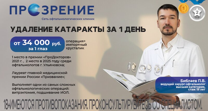 Клинику рекомендую! Маму привожу на приёмы и оперативное лечение в Прозрение. Я даже не знала, что и в платной клинике можно получить лечение по ОМС. Специалисты на высшем уровне во всем! До этого мы в течение года ездили в Чебоксары для проведения инъекций в глаза. Это дополнительные расходы не только времени, но и денег и сил. А сейчас мы это же лечение получаем в своём городе Ульяновске. Это просто чудо! В декабре 2024 года опять планируем посещение мед. учреждения.