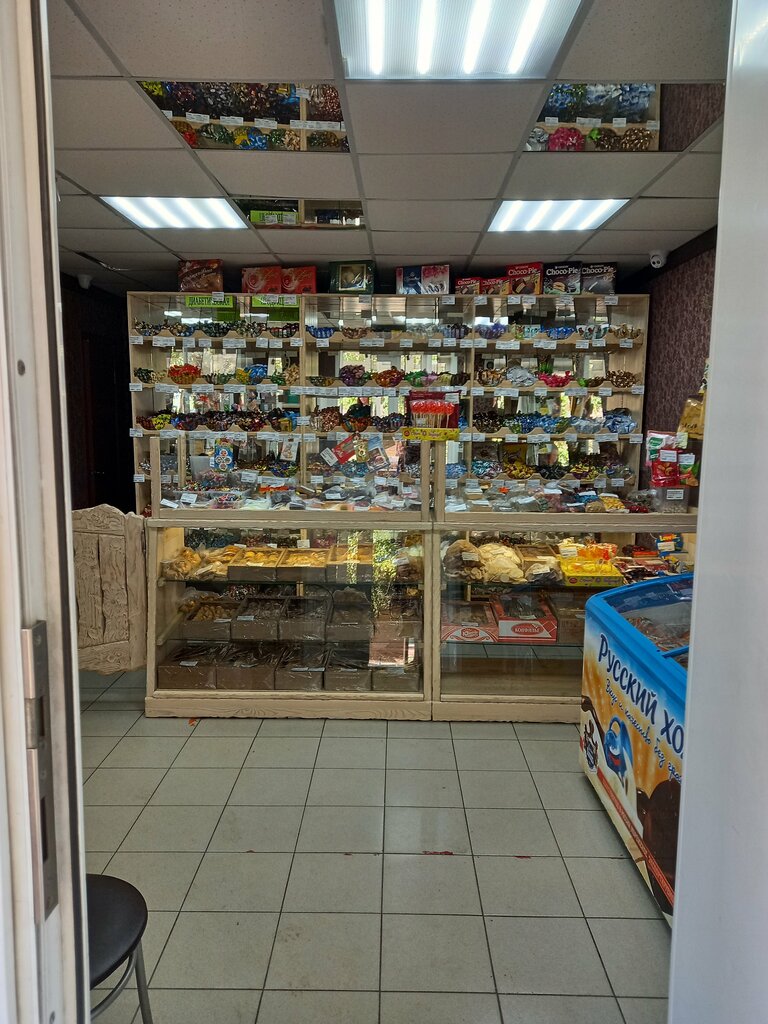 Отличный магазин для сладкоежек . Торты,пероженное,пряники ,вафли,печенье ,различные конфеты,чай. Все свежее. Всё взвешает и продаст вежливый продавец. Советую.