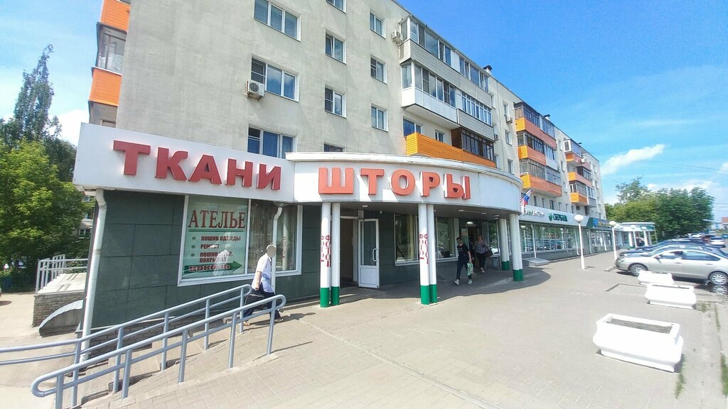 Маленький и уютный магазин с большим выбором товаров:фурнитура,нитки,пуговицы,все для вязания,ткани,шторы,глинянные изделия.