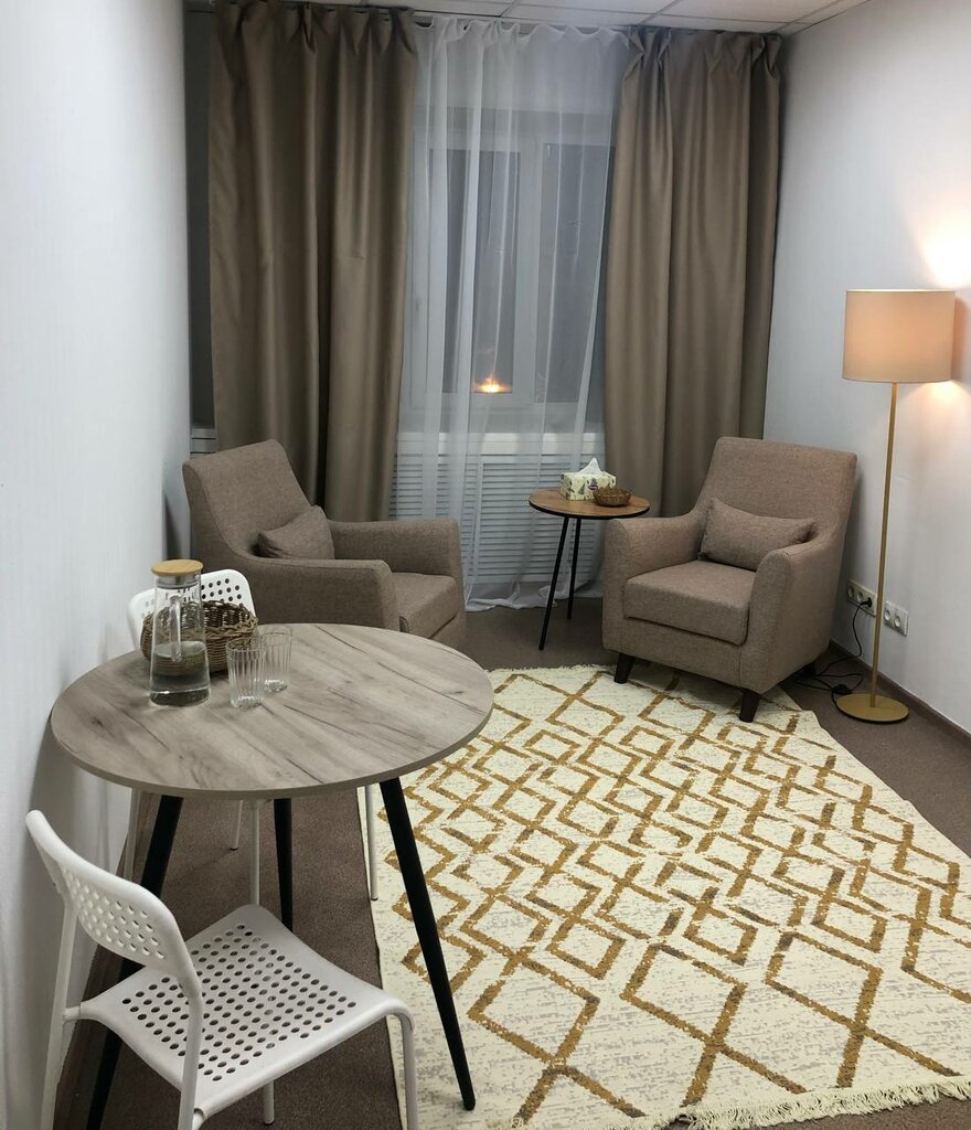 Здравствуйте, была в кабинет №2 на телесных сессиях. Мне все очень понравилось: дружелюбная девушка на ресепшене предложила чай (что очень актуально зимой), есть раздевалка и чистые тапочки, в самом кабинете светлаю уютная обстановка, стоит диван с креслами столик и вода. Также есть кушетка для массажа, можно попросить плед. Расположение кабинета находиться в деловом центре, удобное место в центре города, на парковке всегда можно найти место