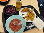 Еда обычная - столовская, не самая вкусная, цены завышены сильно, нарезка овощей слишком крупная, в целом не рекомендую Деньги взяли даже за ложку сметаны, написано 30 гр ну я положил две чайный откуда 30гр