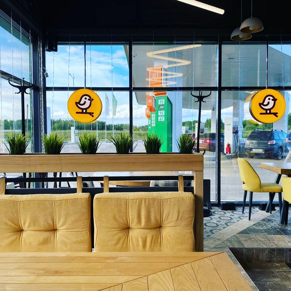 Часто ездим с мужем заправляться и мыть машину,заодно и покушать в Птичке, девушки работают приветливые, подскажут всегда , все подогреют и вынесут к столу, очень вкусный кофе и своя выпечка, так же берем и из основного меню - и всегда вкусно