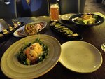 Место понравилось, зашли просто поужинать. Брали пасту с креветками, азиатский суп, цезарь и светлое пиво. Пиво варят сами, в целом неплохое и цена тоже адекватная. Были во время квиза, во время бронирования нас предупредили, что может быть немного шумно. Сидели мы не в основной части зала, поэтому шум от игроков нас не смущал, даже поглядывали на экраны и пытались отвечать на вопросы. Еда вкусная, вопросов к качеству не возникло. Единственное официант сначала забыл про цезарь, но после напоминания его достаточно быстро принесли