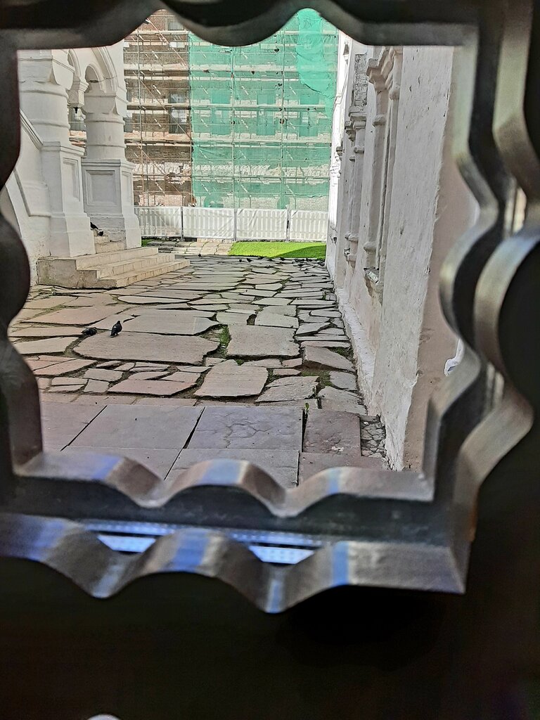 Прекрасный туалет. Находится за большой кованой дверью, слева от лестницы.