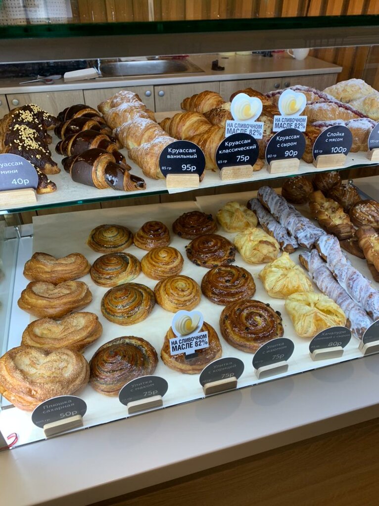 Хорошая сетевая пекарня. Заказывали раф, американо и очень вкусный круассан с шоколадом 🥐 Был удивлён салфетками порезанными на две части 😄 Приветливый персонал. Кофе приготовили очень быстро. Чистое уютное кафе. Удобное приложение для накопления бонусов.