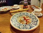 Было очень хорошее настроение на вечер в этом кафе, но увы, ожидания не оправдались( Да, красиво, интересно, ярко, стильно. Ну как-бы, на этом все плюсы закончились. Из меню нам не понравилось практически ничего, кроме баклажановых рулетиков) Хинкальки принесли грустные, упавшие, и подсохшие. Хачапури по-аджарски, если честно сказать, худшее в жизни, это просто лодочка из теста, а начинка там очень глубоко и её мало, оно как-будто пустое.. Ожидание блюд очень долгое, и можно было бы потерпеть, если было бы качество на высоте. А так, спасибо, возвращаться в данное заведение нет желания)))