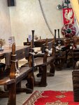 Зашли с женой поздно вечером, после другого ресторана (где не очень понравилось), были не голодные, поэтому просто хотелось выпить местных напитков и перекусить, всё что заказали было мега вкусно, официант вежливый. Само помещение очень атмосферное, на входе пушка, столы украшены мушкетами, везде русская тематика, на стенах сцены из стар славянской жизни, живая музыка (женщина играла на баяне старые песни о главном), место огонь, рекомендую!