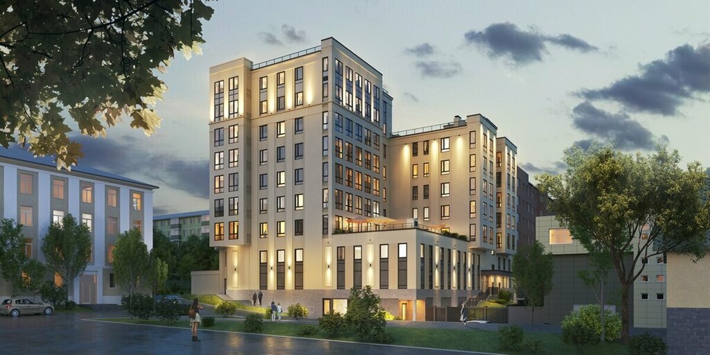 Нравится расположение дома. Внутри тоже красиво. Отсутствие придомовой территории меня не волнует, т. к. погулять можно и в парке, до которого 1,5 остановки. Имеется двухуровневый паркинг. Хотите жить с комфортом- купите парковочное место или живите без машины. В квартирах индивидуальное отопление, высота потолков 3,1 метра, большие окна. Несмотря на близость проспекта, не очень шумно. На вкус и цвет товарищей нет, но мне дом в целом очень нравится.