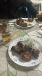 Обслуживание хорошее. Порций большие. Качество приготовления - на любителя. Шашлык бродячей собаке понравился