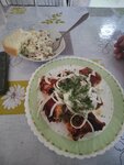 Девчонки молодцы, помещение чистое, скатерти не жирные, приборы тоже, кухня чистая( я посмотрела) Еда домашняя, порции большие, нужно по половинке брать, мы столько не кушаем, бозбаш, борщ, селянка- все оч вкусное, шашлык с собой взяли. Специи все на столе на любого гостя.Рекомендую! Спасибо большое ☺️