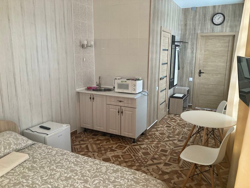 Останавливалисяв данной гостинице со спортивной командой. Как проходила бронь не знаю, так как бронировал не сам, оплата была путем перевода по номеру телефона. Сам номер чистый, маленькая кухня с микроволновкой, санузел в номере.