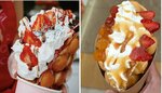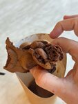 Очень вкусные вафли, постоянно здесь покупаю. Свежие продукты и много наполнителя кладут😊 Вафля в конце не сырая, она размокает от мороженного. Это для особо одаренных в отзывах.