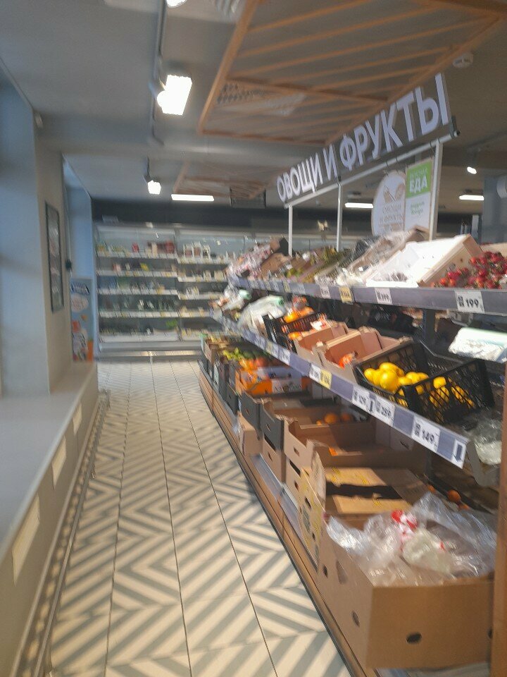 Гнилые мандарины вперемешку со свежими , мятые перцы, полупустые полки. Из плюсов кассир 1 на весь магазин. Завидую её выдержке. В бестолково рвсставленном товаре помогает покупателям сориетироваться .