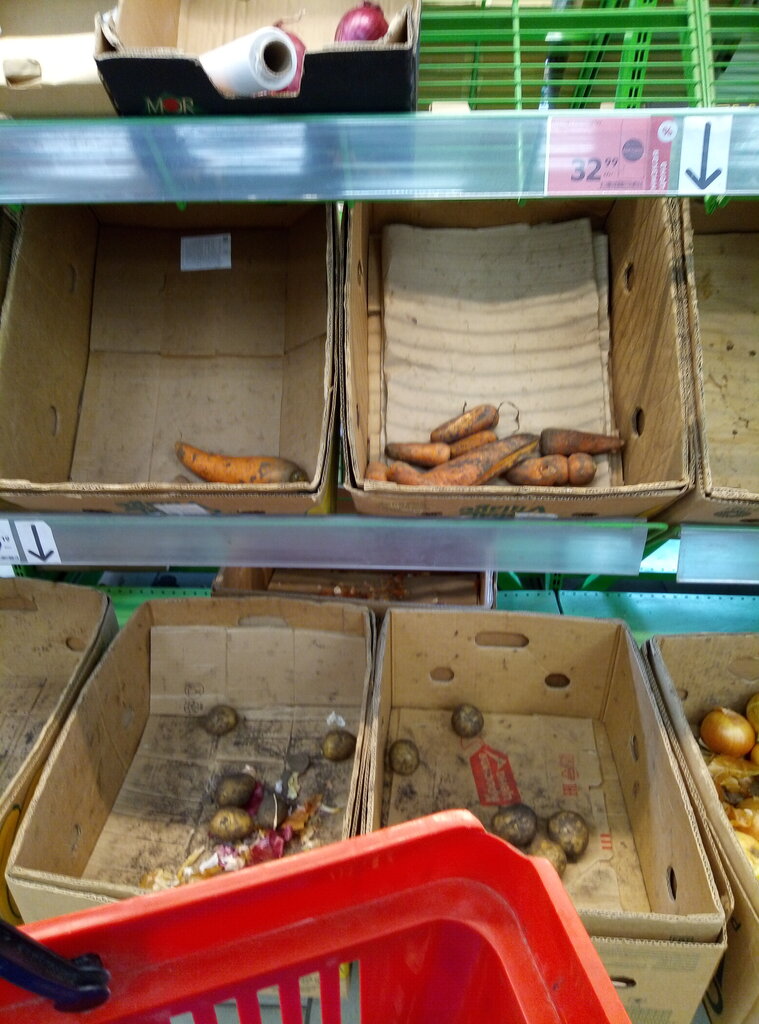 Всегда огромные очереди, при условии, что есть кассы... но нет кассира... Цены на кассе и на ценнике совпадают очень редко, при этом при отказе на кассе , смотрят как на врага.. Хотя это совсем не вина покупателей. а разница как и 10 руб так и 90 руб. Вообщем ходим только потому что рядом с домом, за необходимыми продуктами